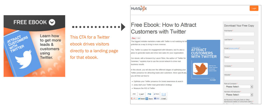 این فراخوانی به اقدام برای کتاب الکترونیکی توییتر، بازدیدکنندگان را به صفحه فرودی برای دانلود همان کتاب هدایت می کند.